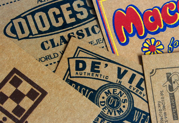 Etiquetas impresas en fibra de coco, material e impresión muy resistente a procesos de lavado.